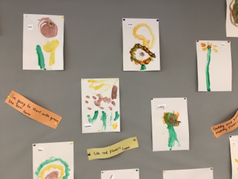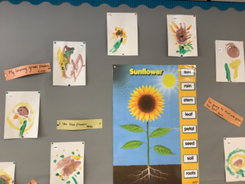 The children have now all completed their beautiful sunflower masterpieces for our wall display. And on the theme of all things nature they were delighted when Dylan found a very hungry caterpillar on Caoimhe's jumper after being outside. We admired its beauty and discussed how it will become a butterfly before Mateo released it back outside.