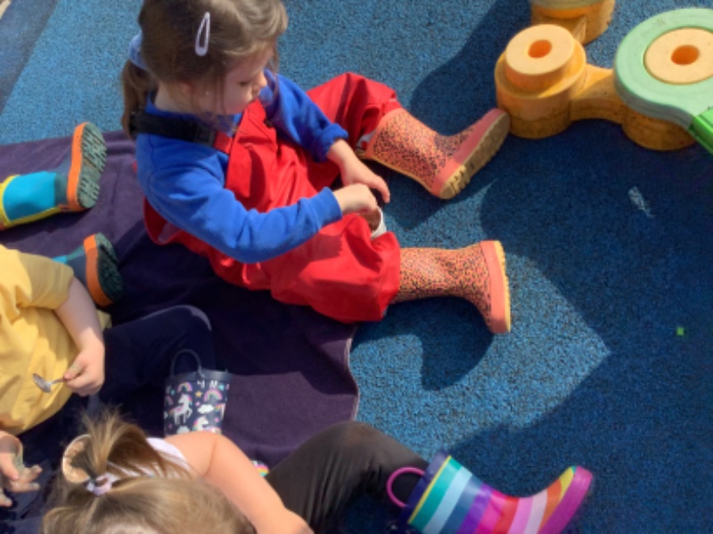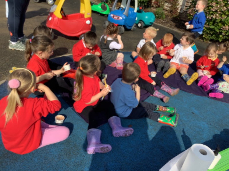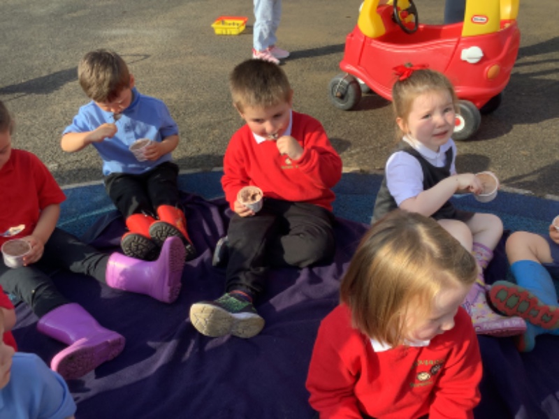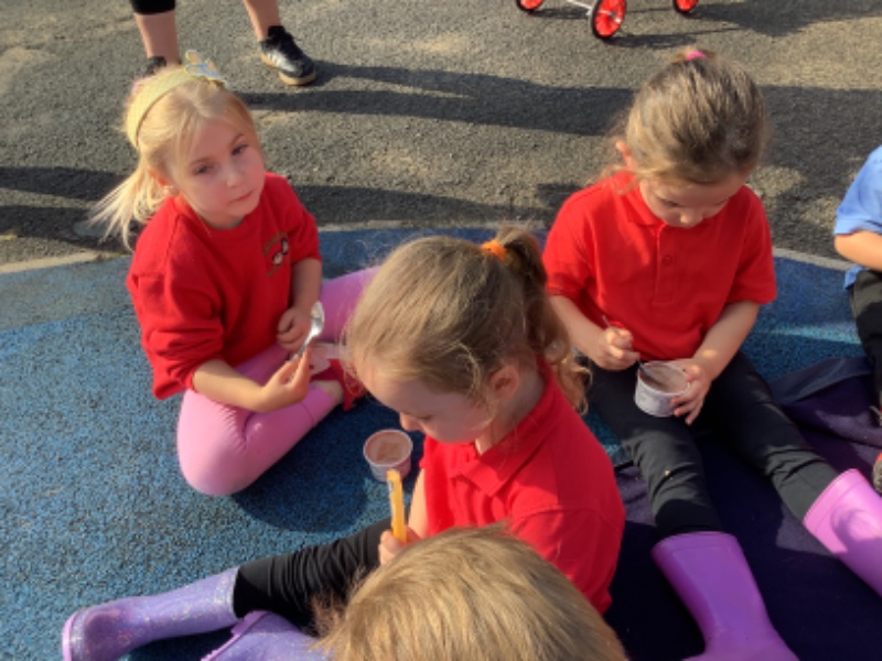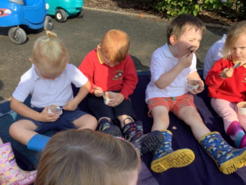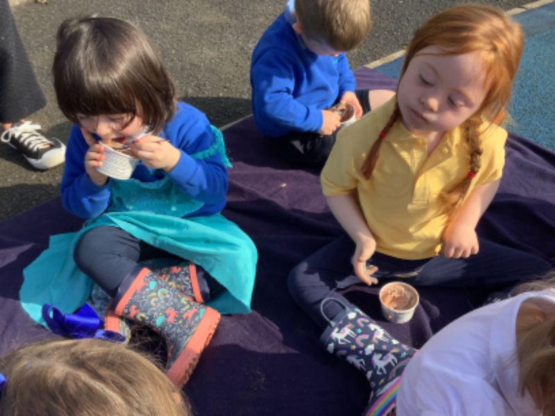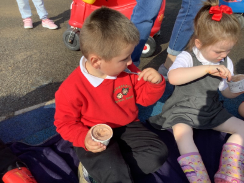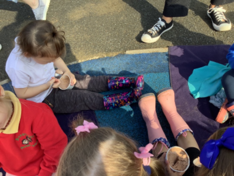 We played with our new friends and enjoyed chocolate ice cream outside!
