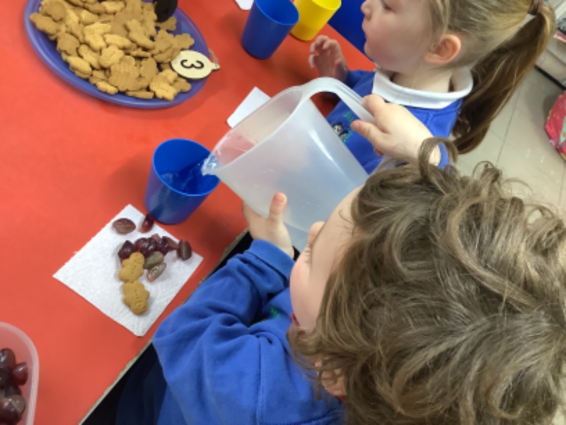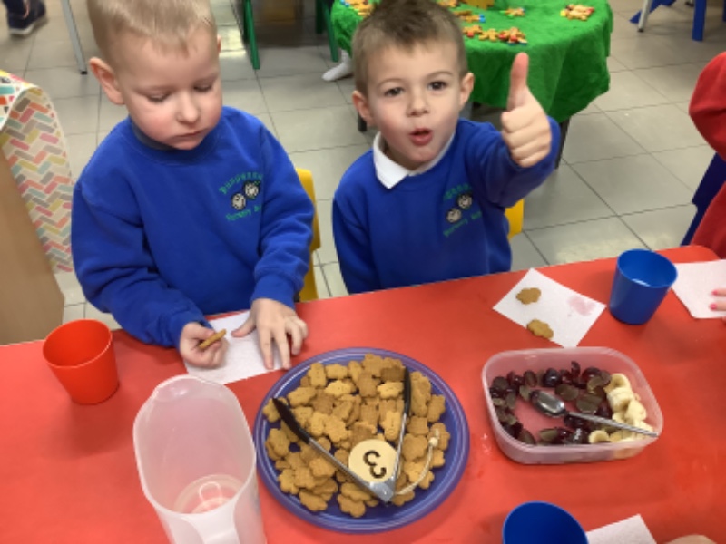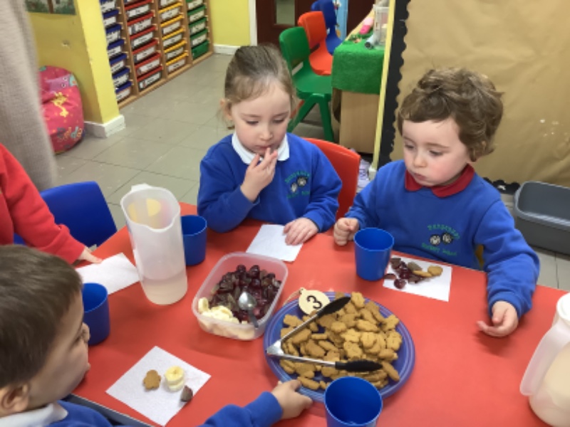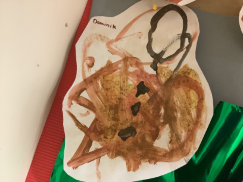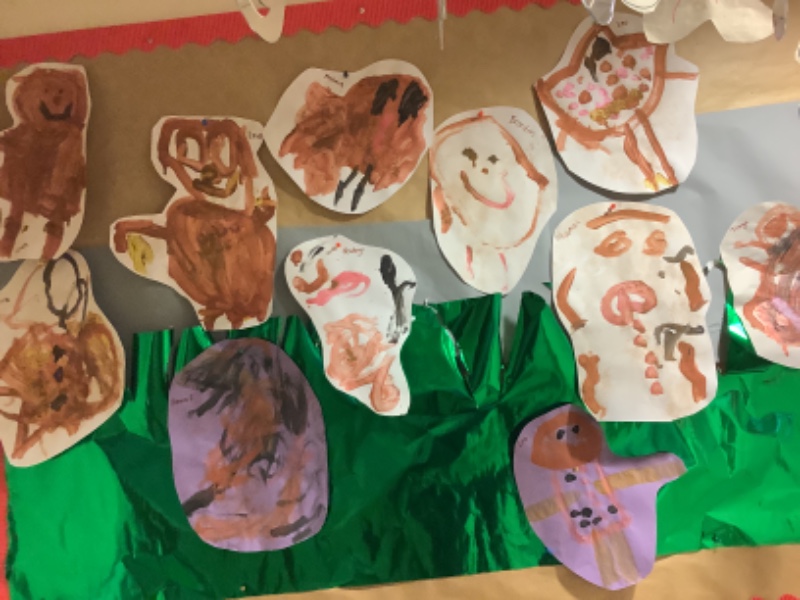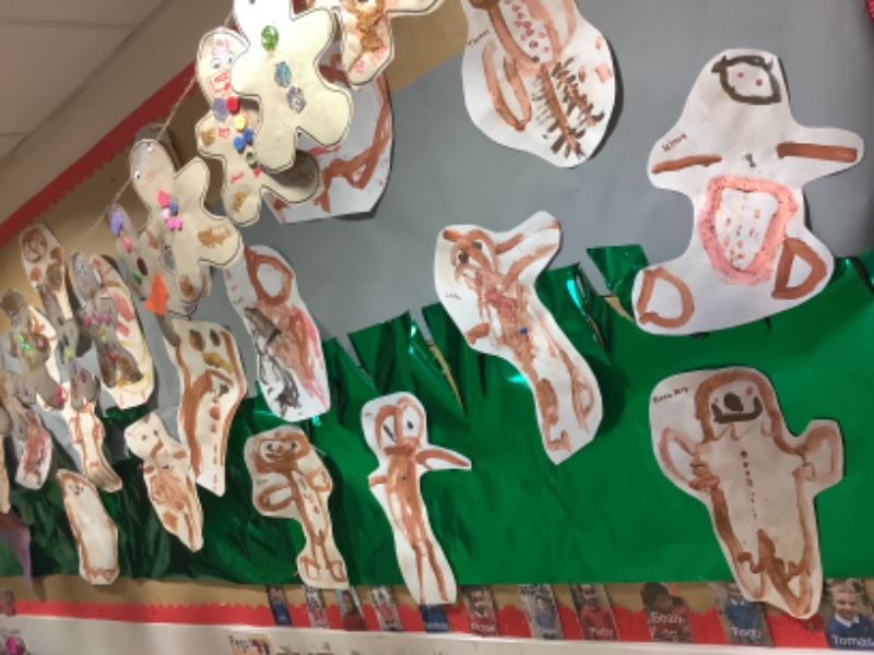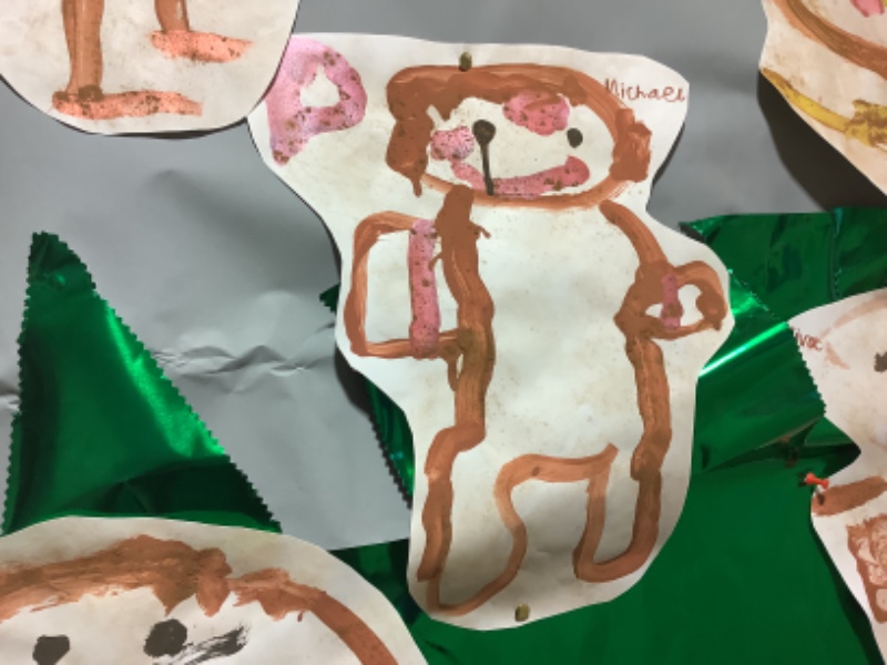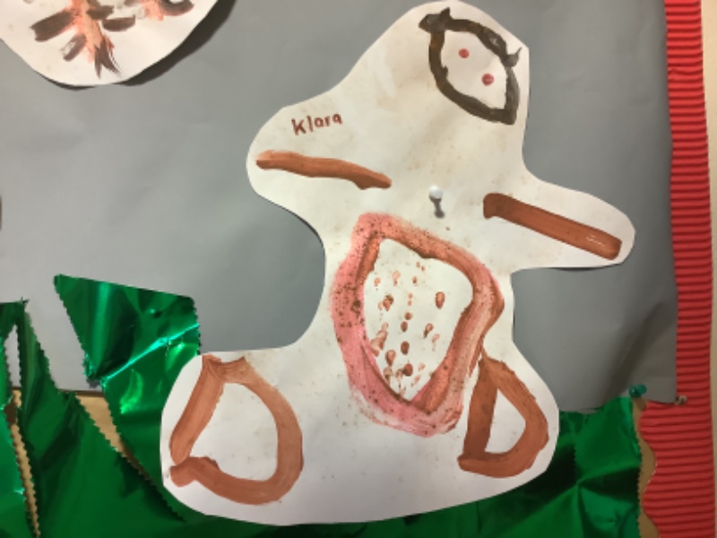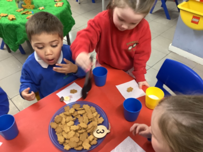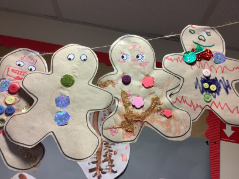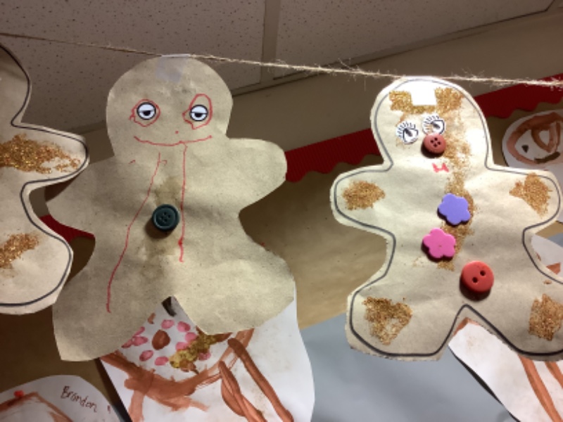 We enjoyed a snack of gingerbread men biscuits. We used hammers and nails to decorate gingerbread men shapes. We painted gingerbread men with cinnamon and ginger scented paint. We decorated gingerbread men shapes.