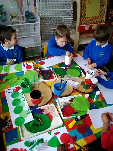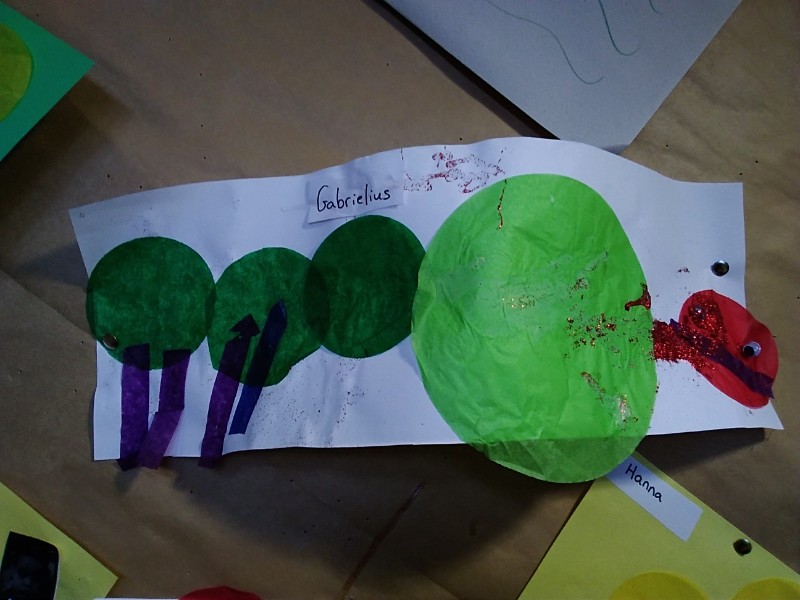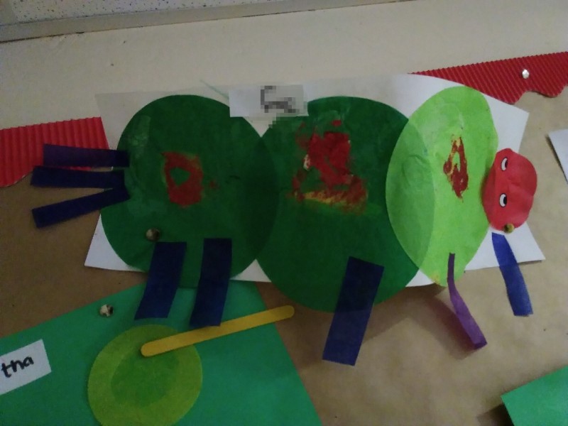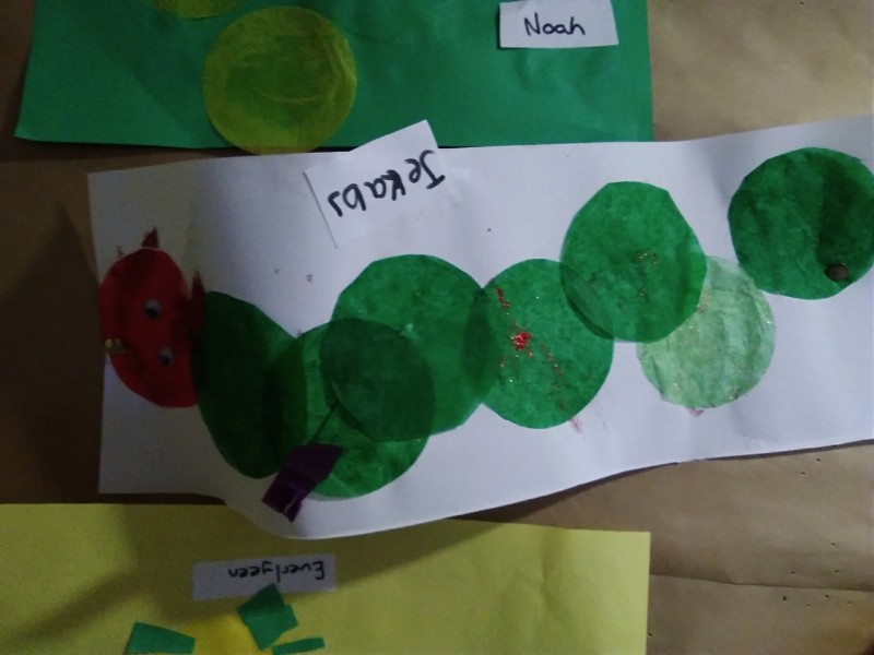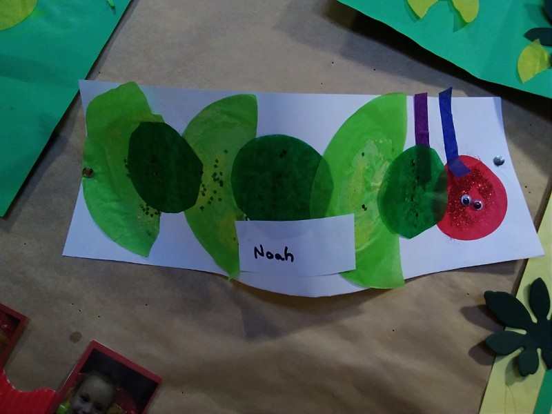 Mrs. Hudson's Class have enjoyed hearing The Hungry Caterpillar story. They have made some great little caterpillar pictures for their Spring display.
