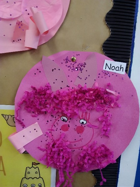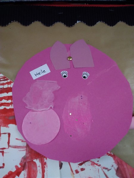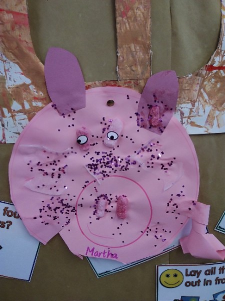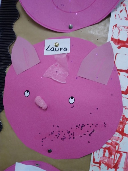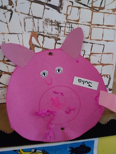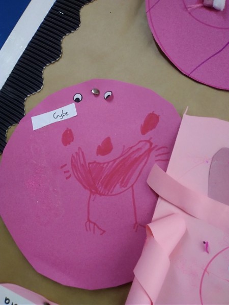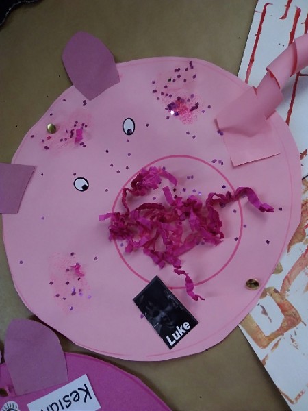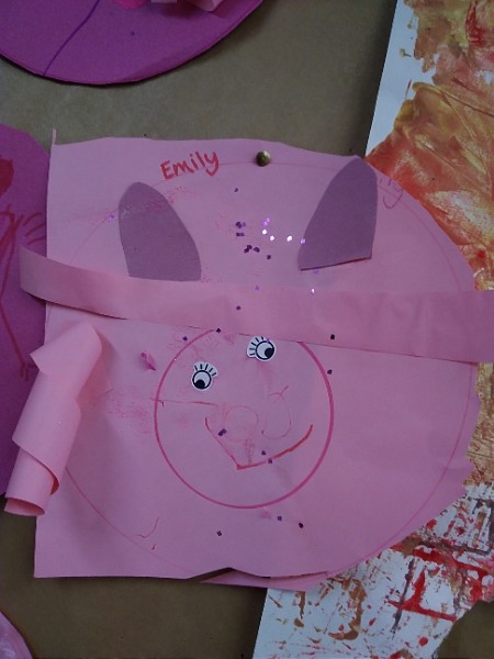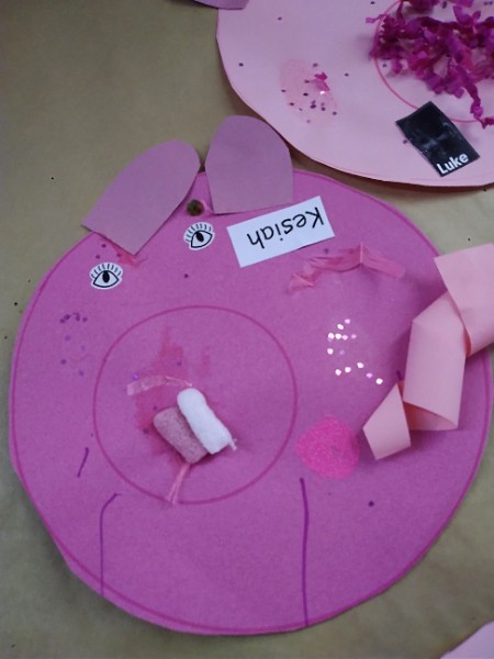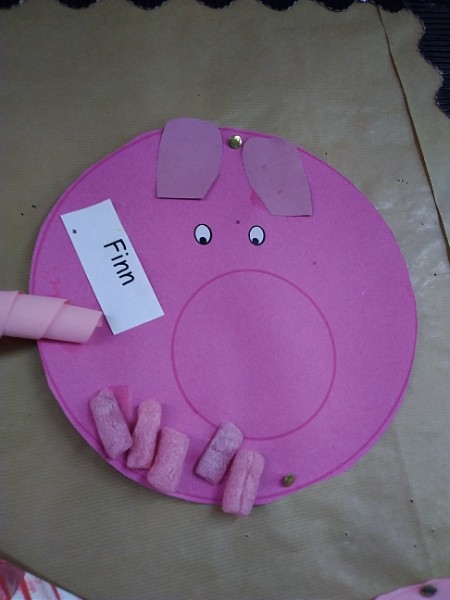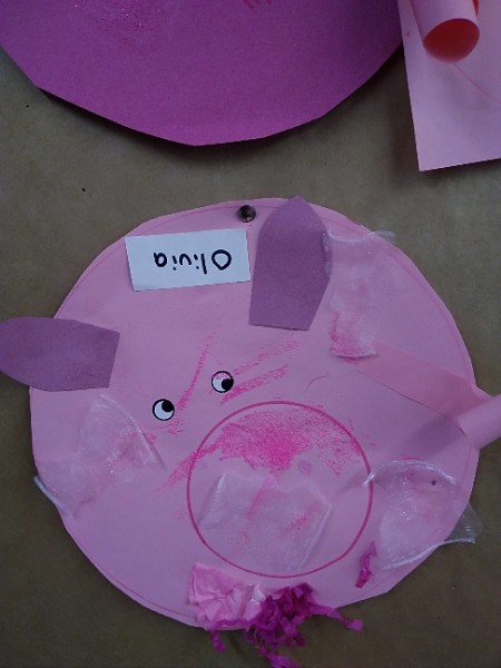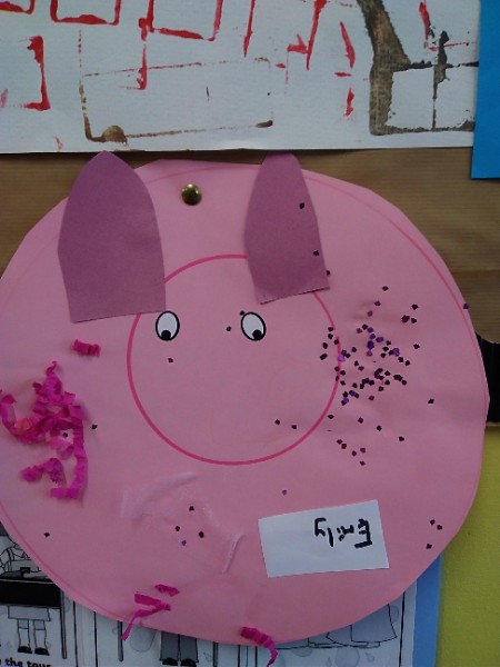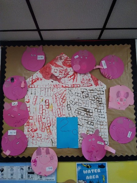 While playing with the cement mixer, crane and bricks during our Construction people who help us theme the class listened to the story of The Three Little Pigs. They printed the pigs a house of bricks with Duplo blocks and created some little pigs to live in the new house safe from the big bad wolf!
