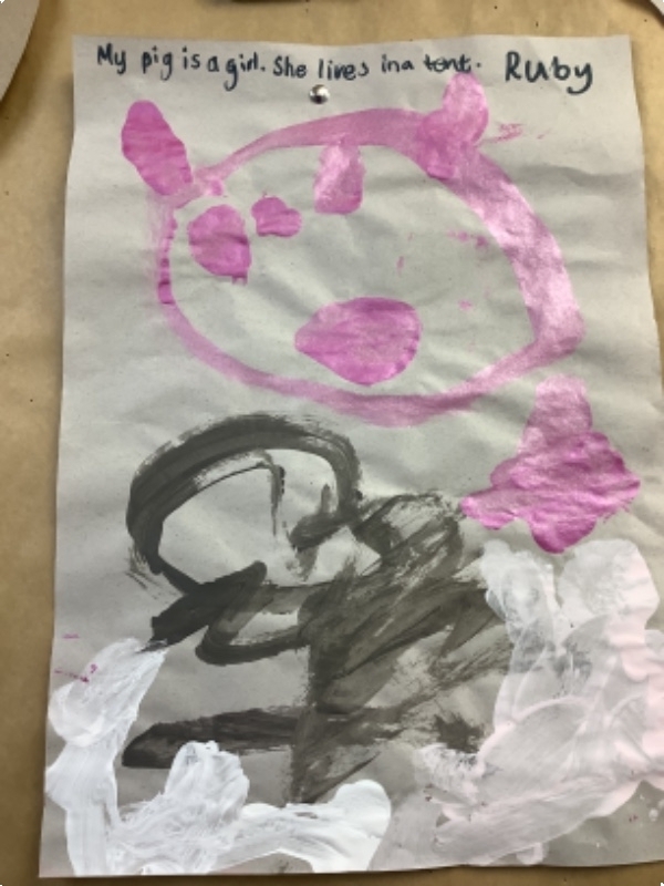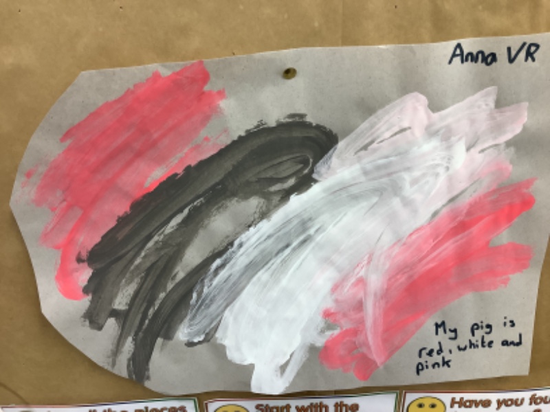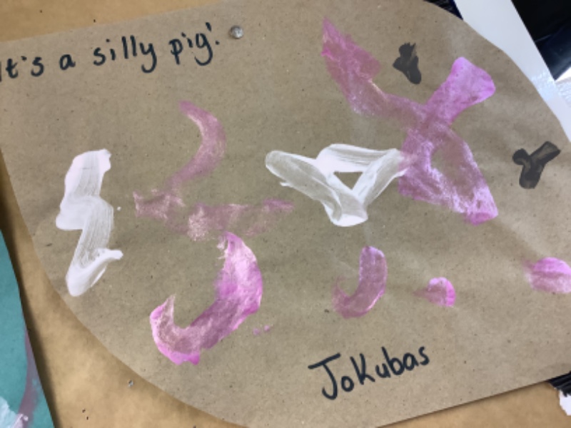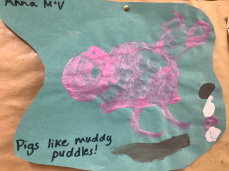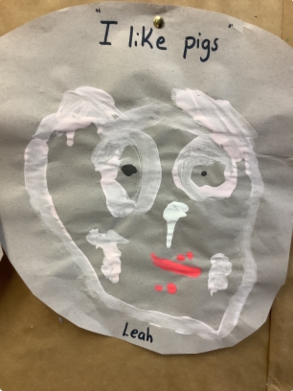 The children in Mrs. Hudson painted some big bad wolves and some little piggies.
