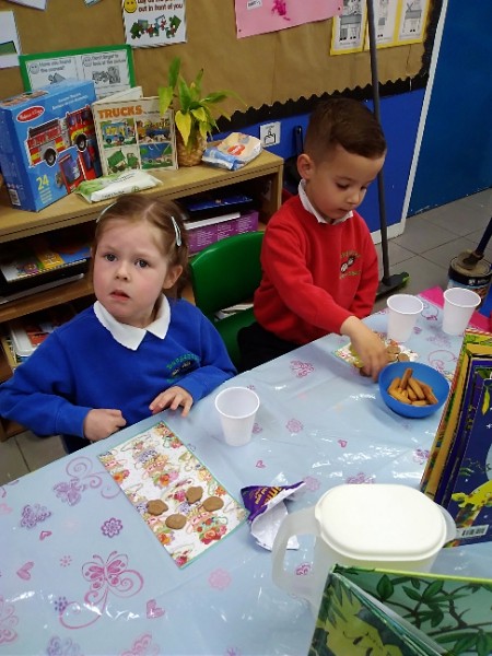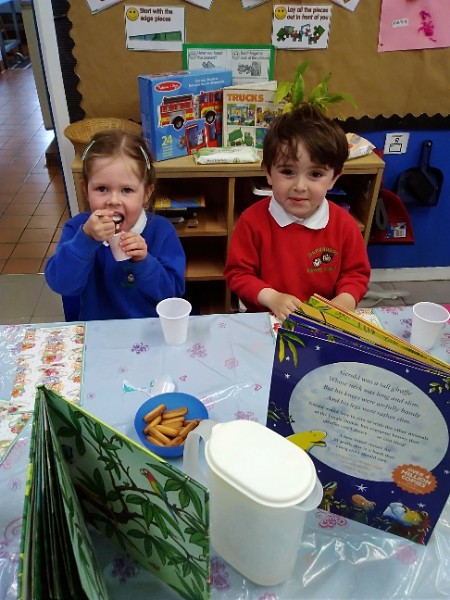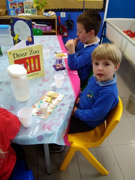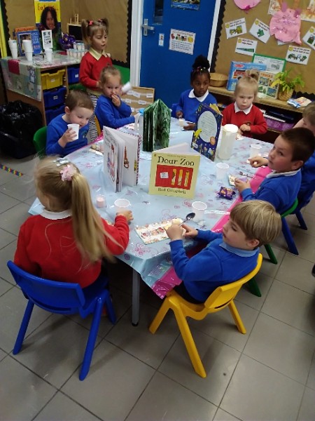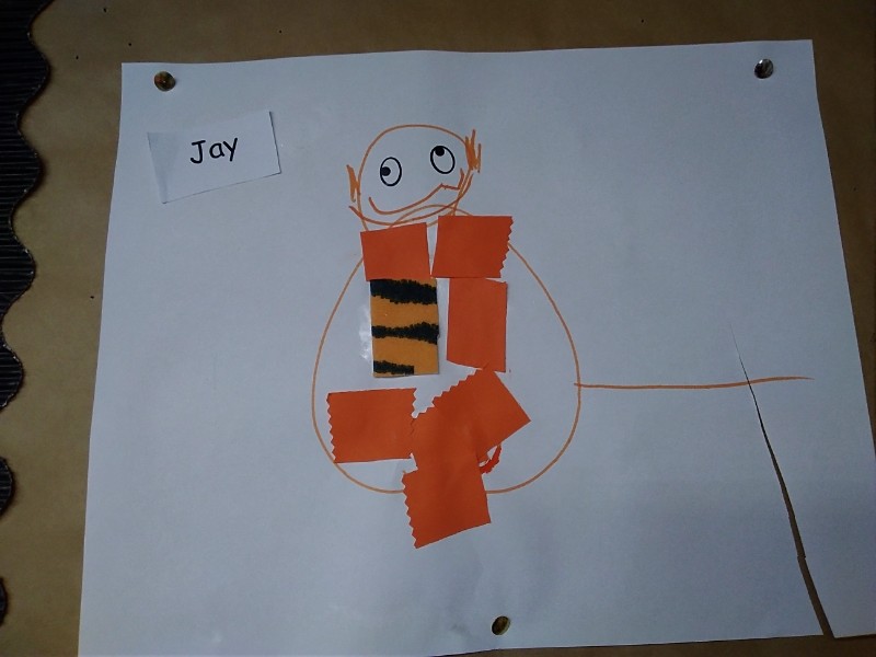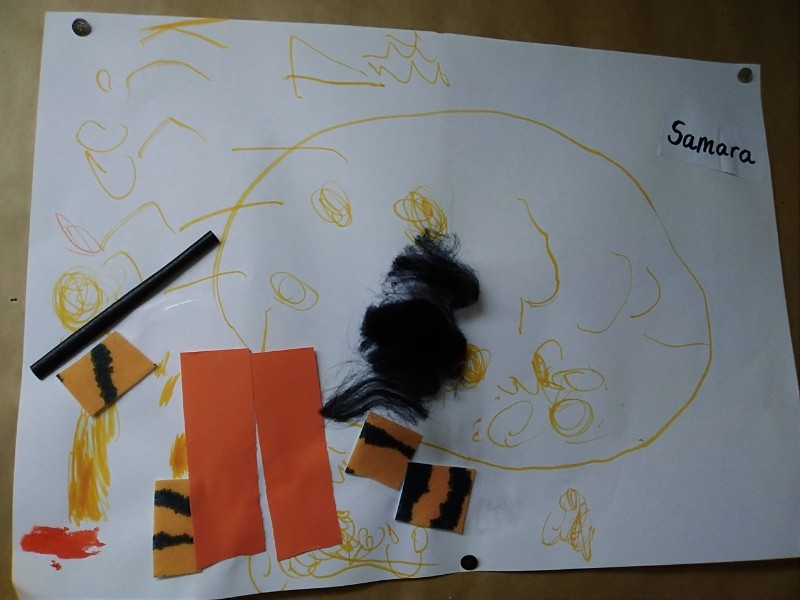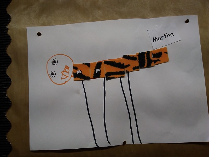 Mrs. Hudson's Class enjoyed hearing some famous zoo themed story books, Dear Zoo, Monkey Puzzle, Giraffes can't Dance and The Tiger who came to Tea. We all decided it would be a great idea to have a Tea Party snack just in case that hungry tiger came by. The children created tiger pictures using pens and collage materials, don't they look great.