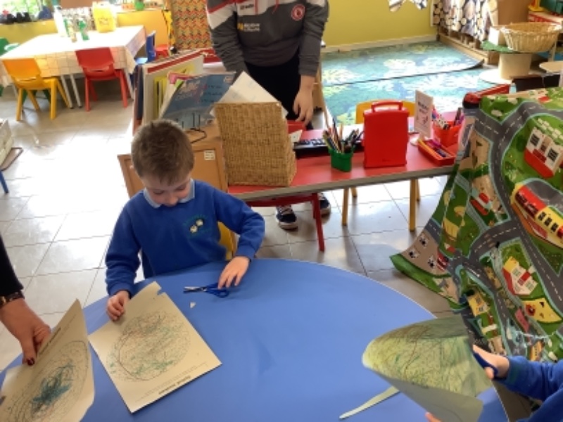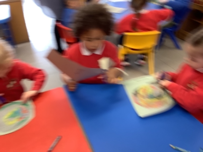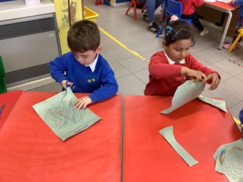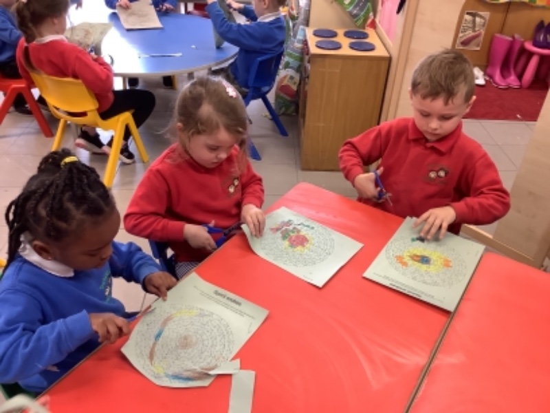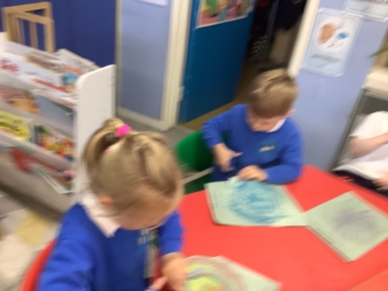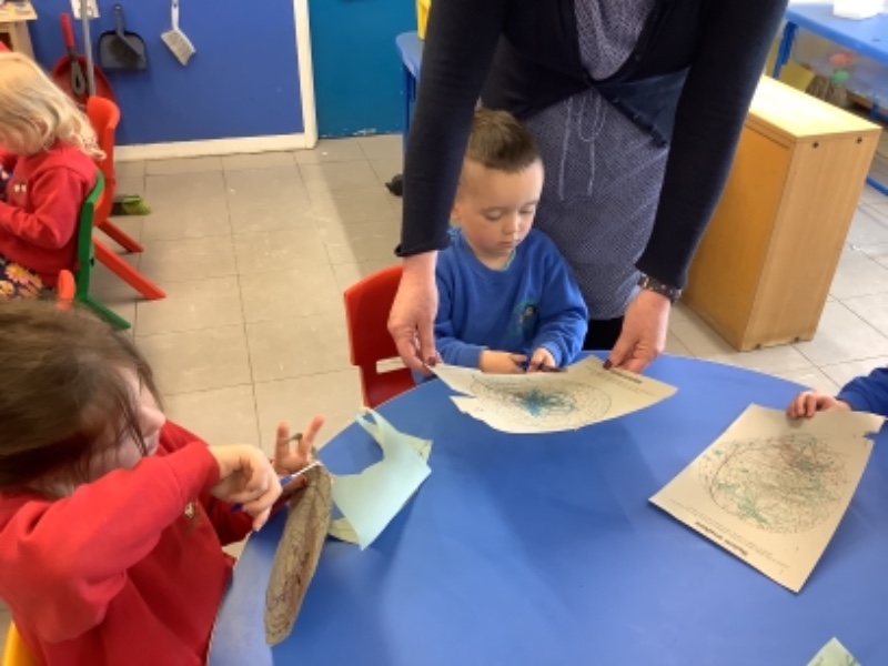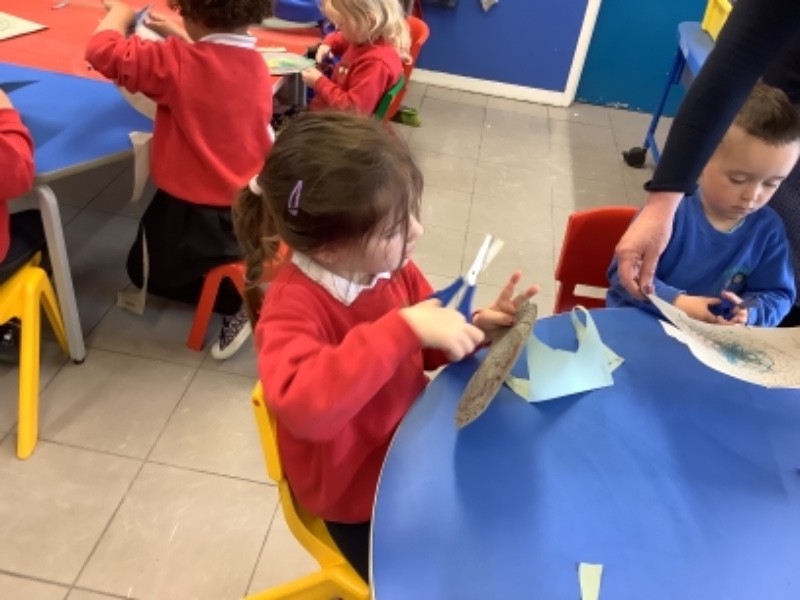 The children are refining their scissor skills by cutting out circles. Don't forget to use the scissors in your Craft Pack that you received in Term 2 to improve your child's scissor skills.
