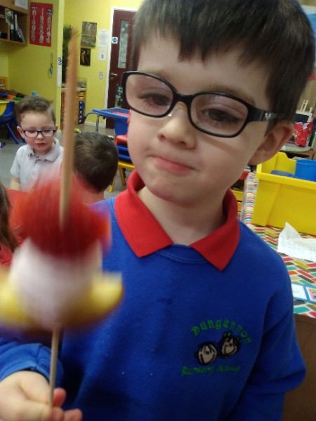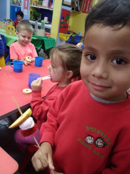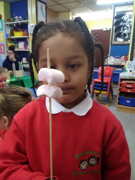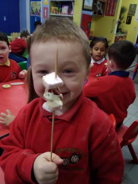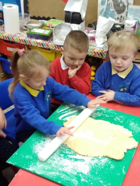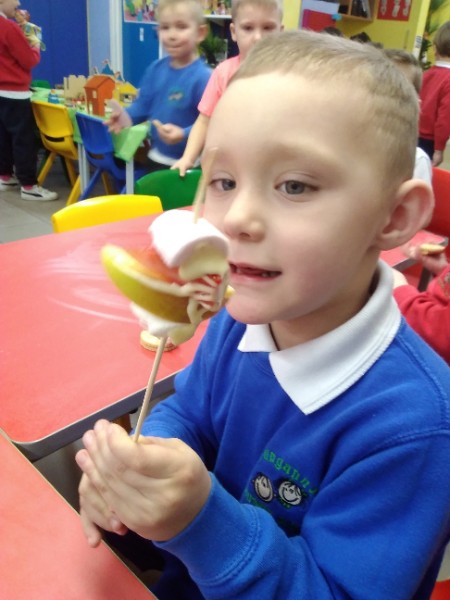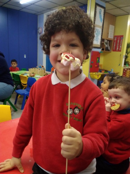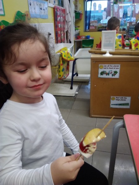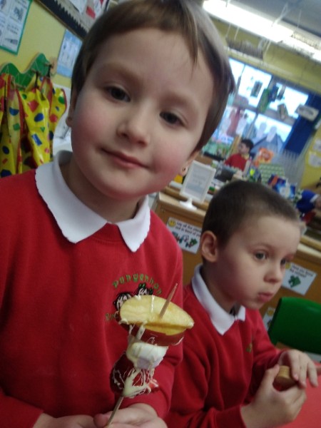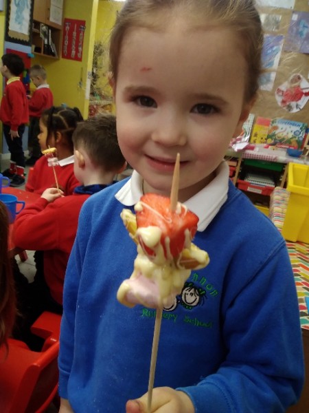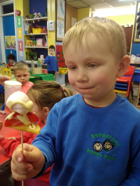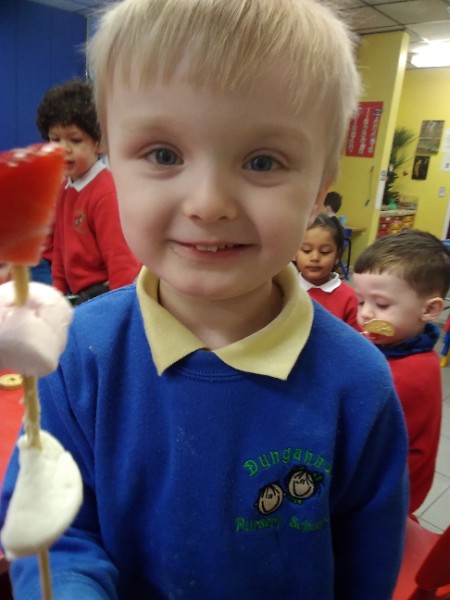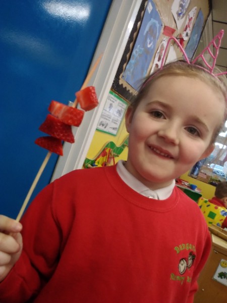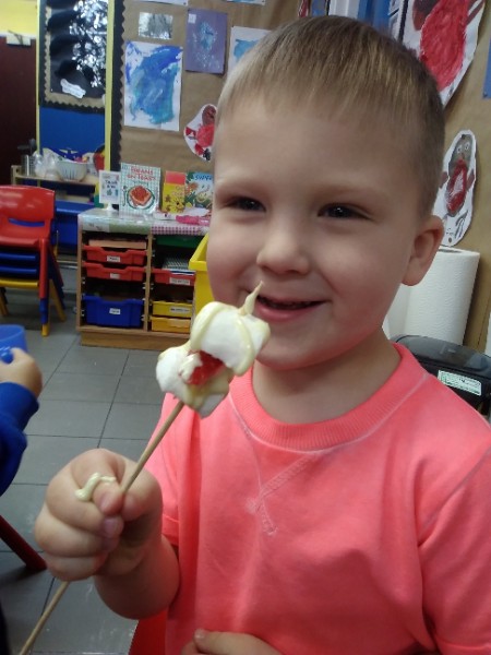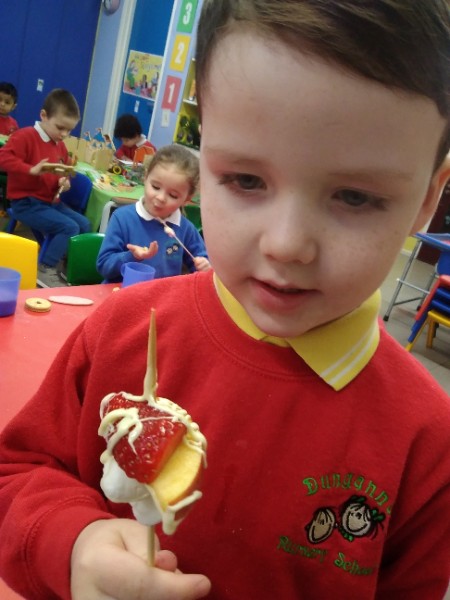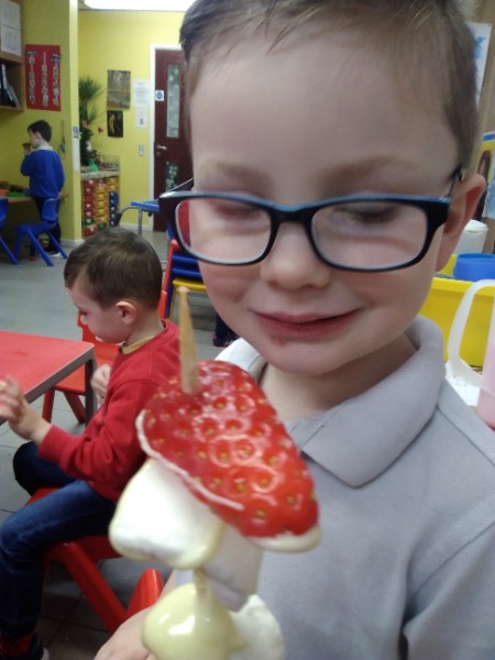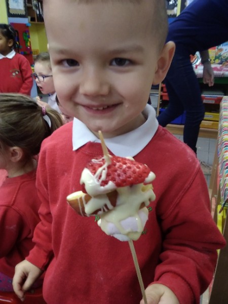 On Valentine's Day the Nursery children baked heart shaped biscuits and enjoyed a snack of marshmallow and strawberry skewers. There might have been a wee bit of white chocolate!