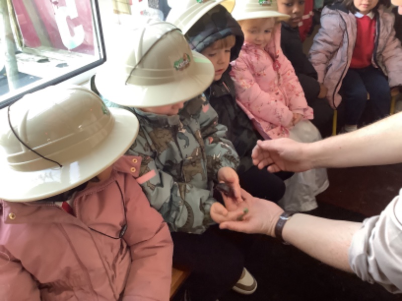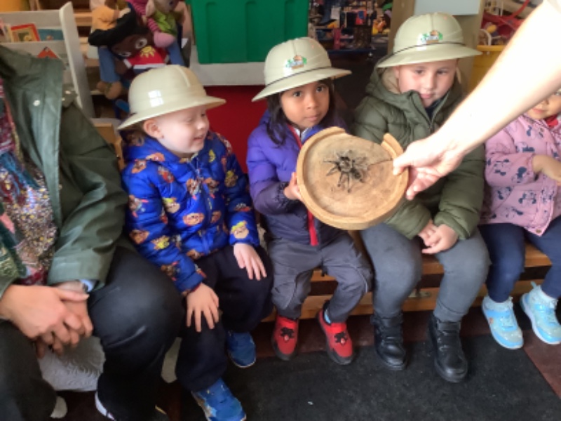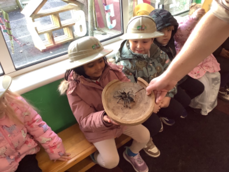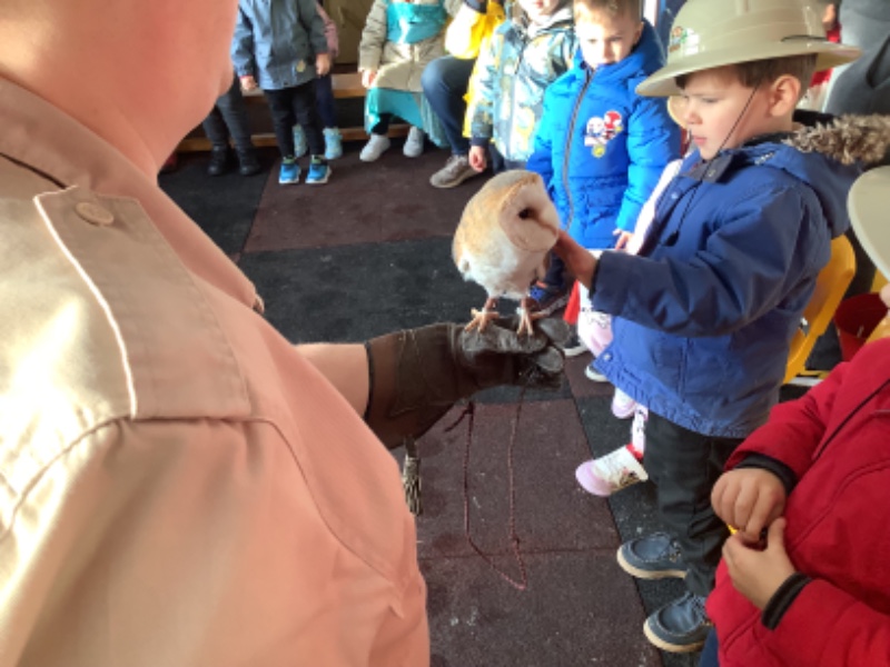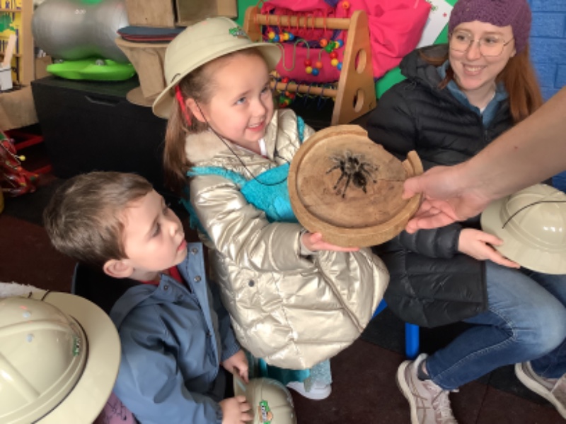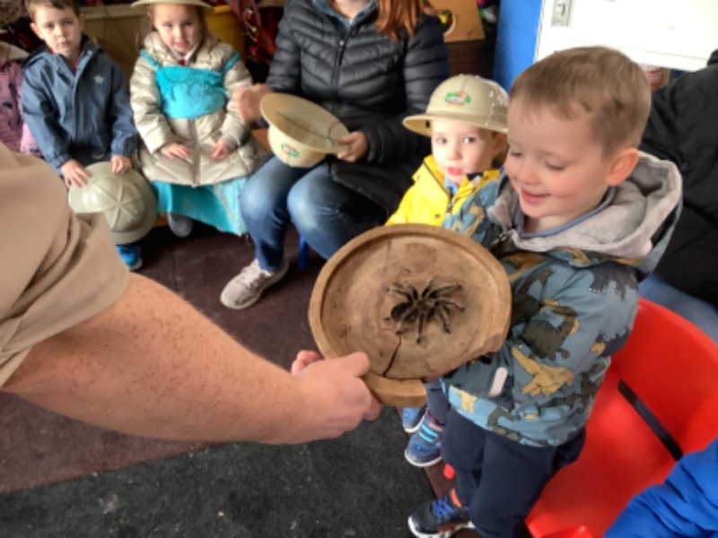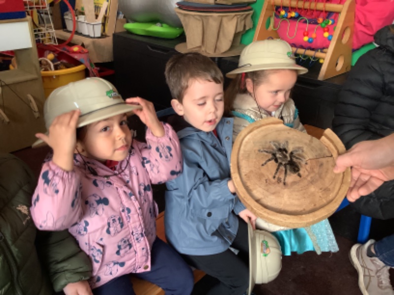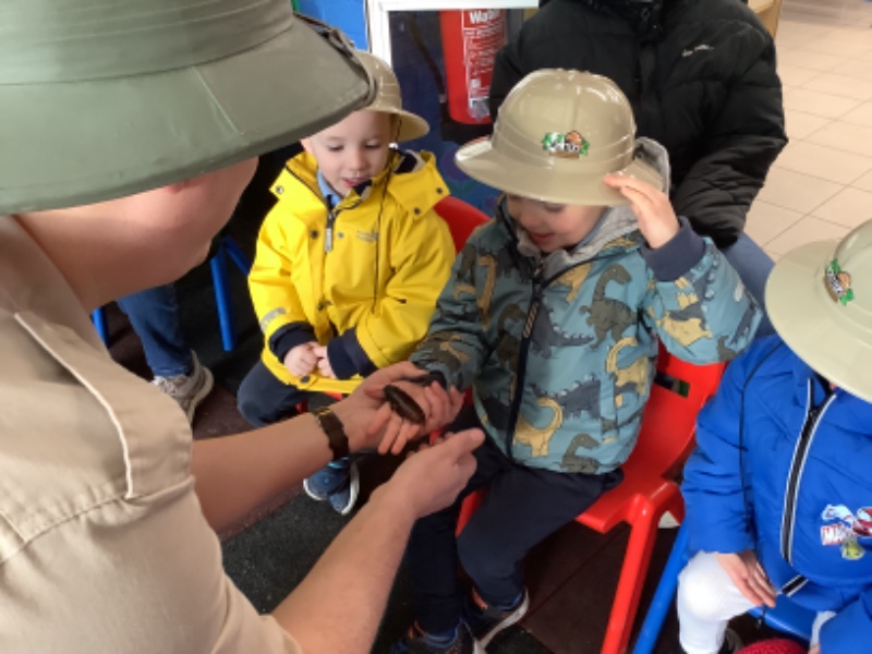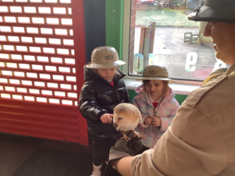 Today we were lucky enough to be visited by Alan and some fantastic wee critters. The boys and girls got to meet curly Sue the tarantula, Clive the cockroach and Pepper the owl as well as Trevor-a stinky toad, Scampi the skunk and a rather grumpy hedgehog. Alan informed us of all the different animals habitats and the children learned big words such as hibernation and nocturnal.