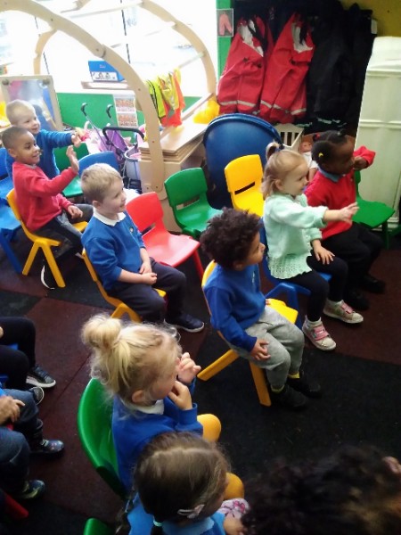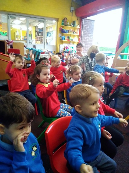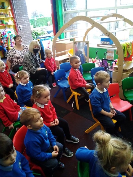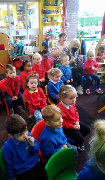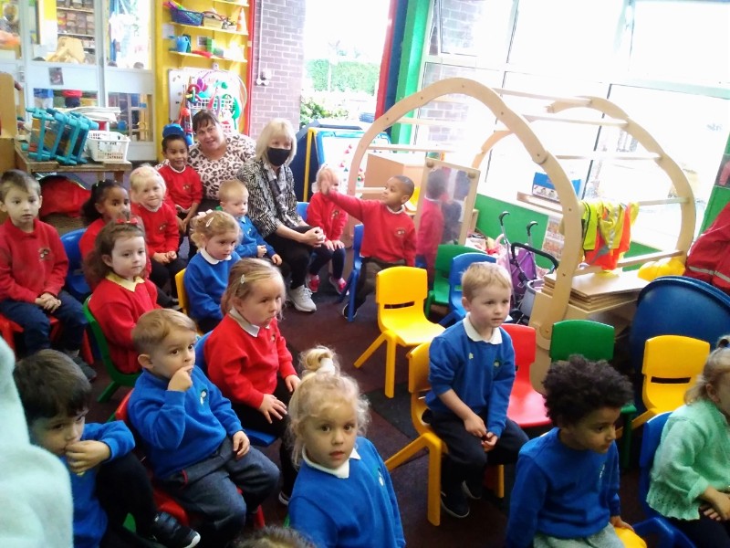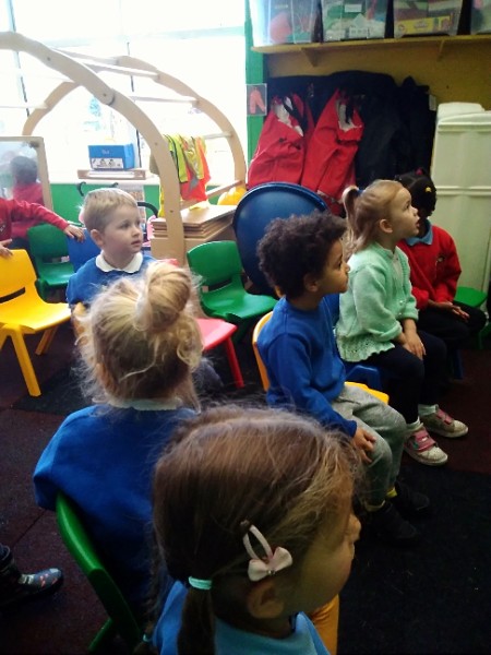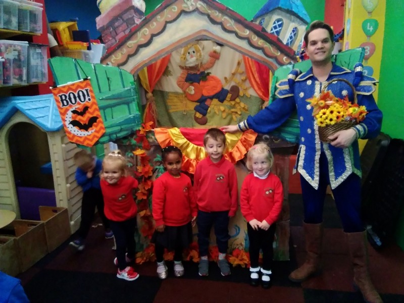 Mr. Hulaballoo visited with his autumn show. He told exciting stories and introduced us to many of his friends, including Dorothy, Sprinkles the mouse, Trixie and Mischief. We sang lots of songs and helped him to act out parts of the play. It was a great day.