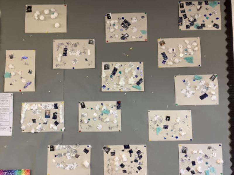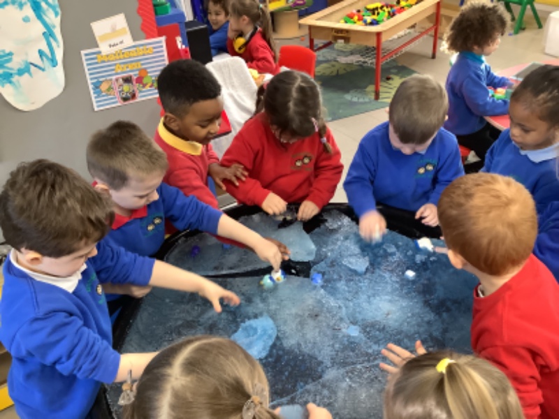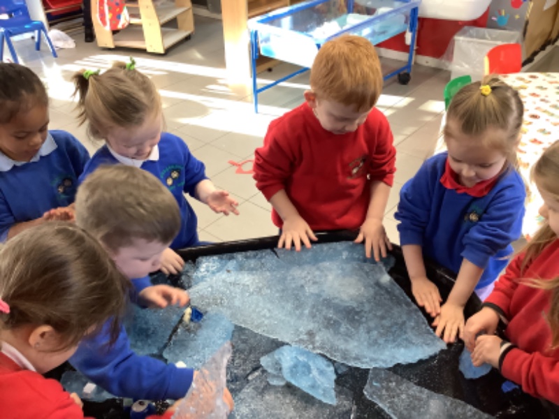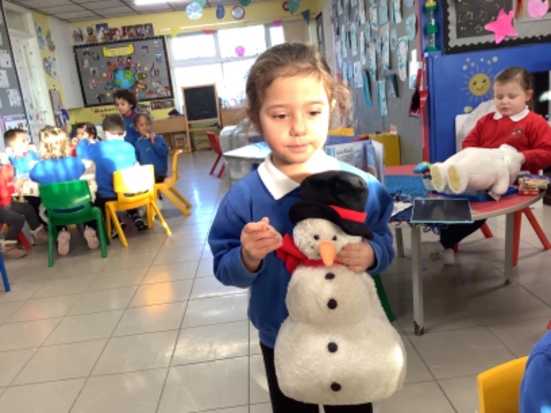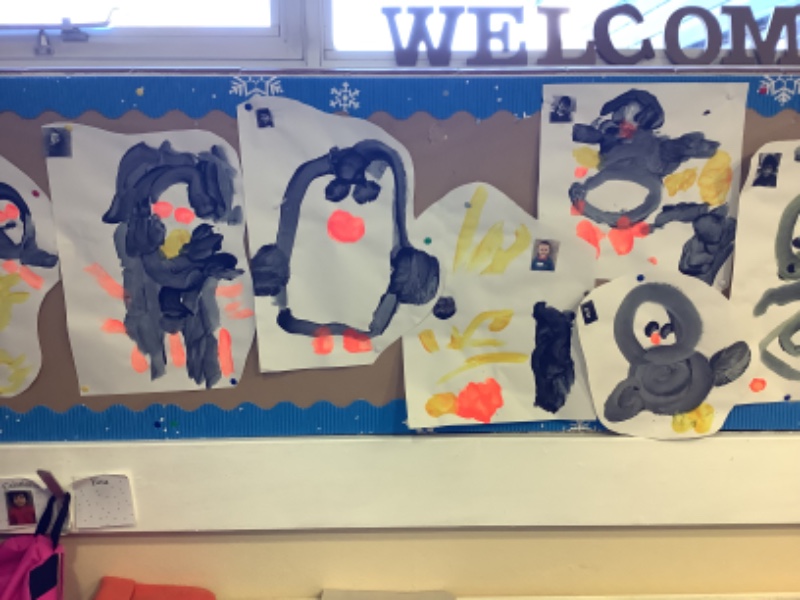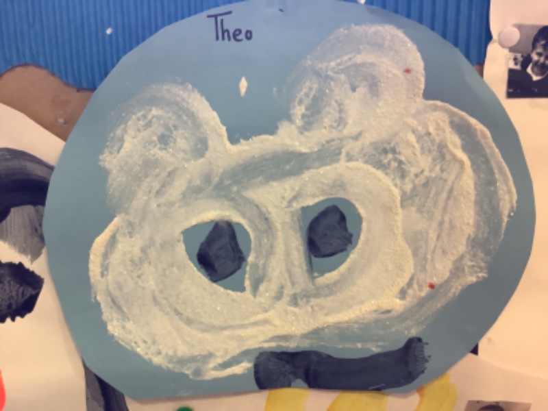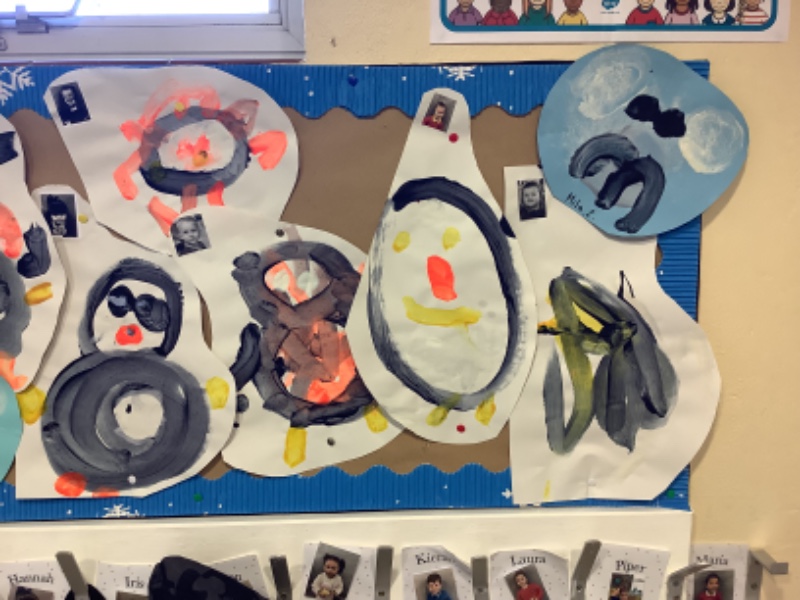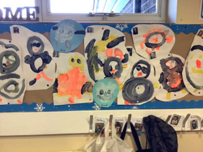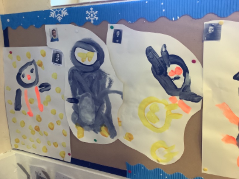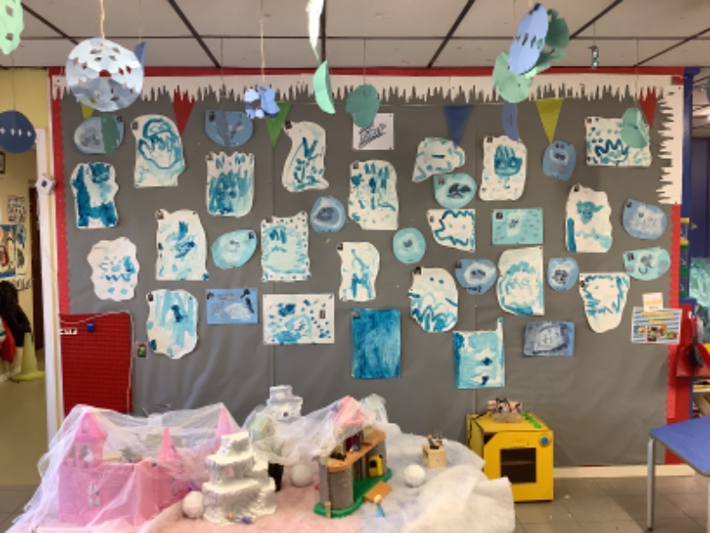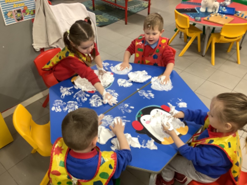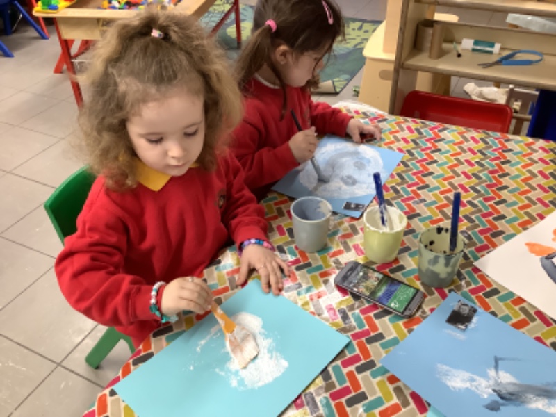 The children in nursery 2 have really enjoyed creating beautiful artwork for our winter wonderland in class. They painted penguins,used various media to create Jack Frost, cut and glued shimmery shiny ice pictures, cut out snowflakes and glitter painted polar bears. This all seemed more magical as we admired the snow through the windows this week.