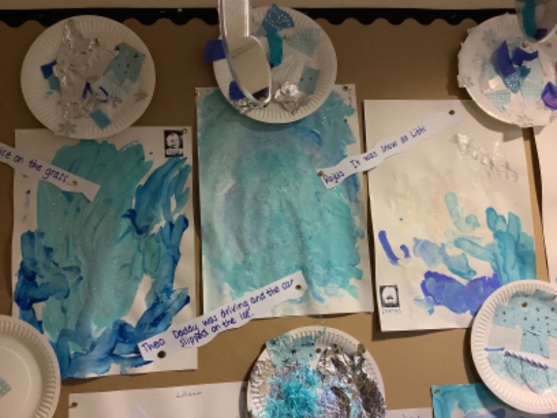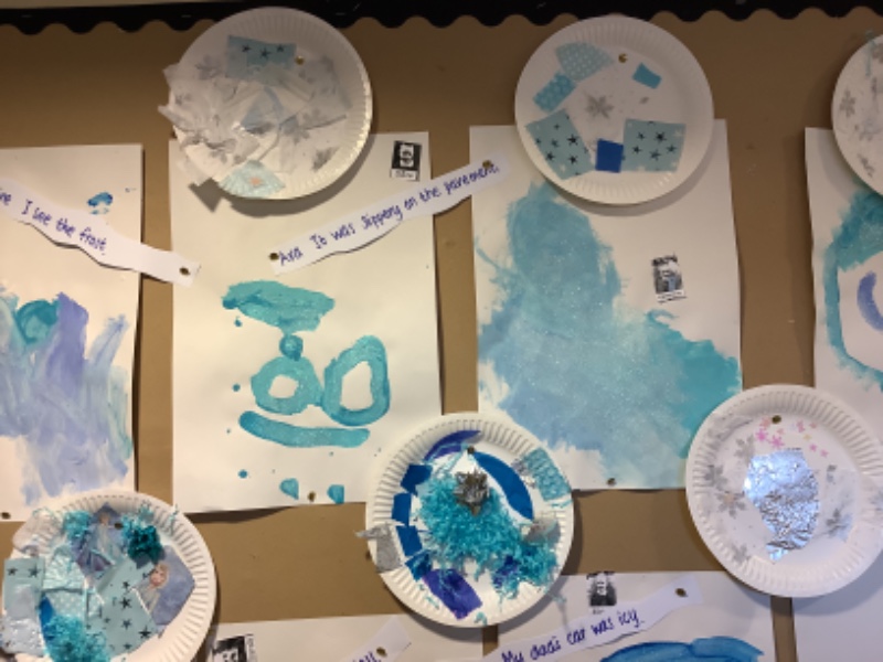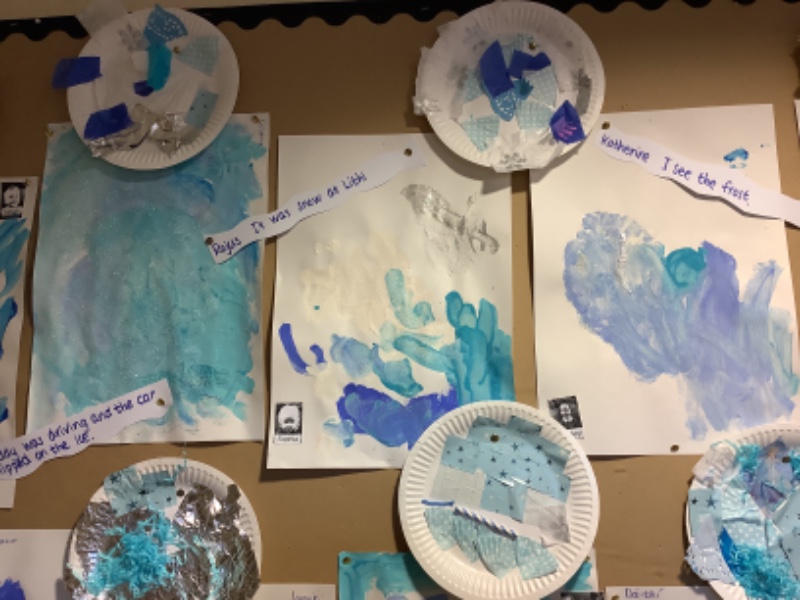 Jack Frost has made everything so cold and frosty. Look at our paintings!