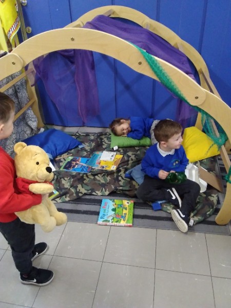 The boys and girls have been enjoying camping, bbqing, exploring woodland small world, jigsaws and puzzles.